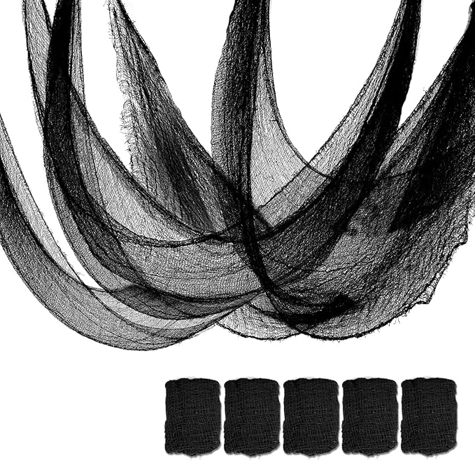 Transform your home into a haunted hideaway with this Set of 5 Halloween Creepy Gauze Cloth Decorations — the ultimate must-have for eerie Halloween vibes! Each piece of spooky black gauze measures 72 x 30 inches, giving you plenty of material to drape, wrap, or hang across walls, doors, tables, porches, and fences.